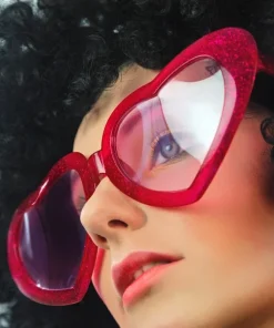 - Occhiali rossi in platica a forma di cuore maxi divertenti per photo booth e feste a tema